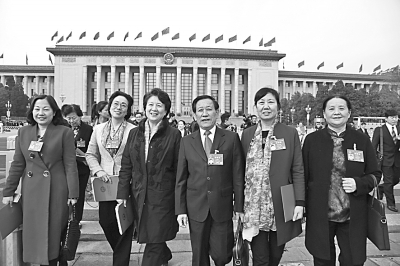 2017年3月15日,第十二届全国人民代表大会第五次会议在人民大会堂举行闭幕会。这是闭幕会后,代表们在人民大会堂前合影留念。光明网记者 季春红摄/光明图片