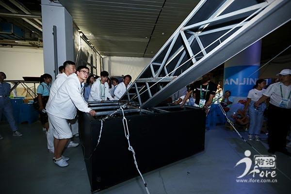 另外一边,一群统一着装的年轻小伙吸引了记者的注意。据了解,他们是来自天津体育学院的大二学生,利用暑假来参加志愿者服务。而他们主要负责的 是在每个章节换场时,将长达十几米的道具快速推上舞台。这个工作看起来简单,但做起来难。“我们也经过了无数次彩排,现在已经很熟练了。”一名大二学生告 诉记者,虽然看起来没有技术含量,但是很考验我们队员之间的配合。