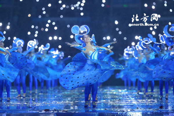 海河欢腾,波涛涌动,500名天津师范大学少女身着美丽的蓝色裙子翩翩而来。随着女孩们的舞动的身影,海河之水的鸣响,这座城市最恒久的表达慢慢舒展到人们眼前,流淌成一段丰盛的岁月长歌。