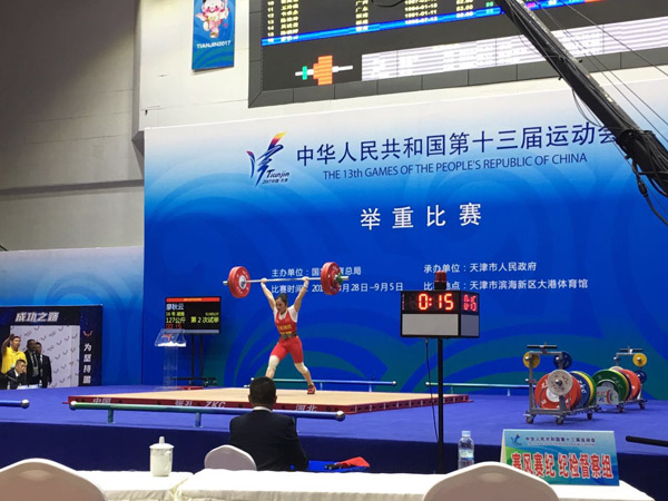 8月28日,第十三届全运会女子举重决赛继续在天津滨海新区大港体育馆举行,在晚上进行的53公斤级比赛中,来自湖南的廖秋云以抓举95公斤,挺举127公斤,总成绩222公斤的成绩,以黑马之姿夺得冠军。