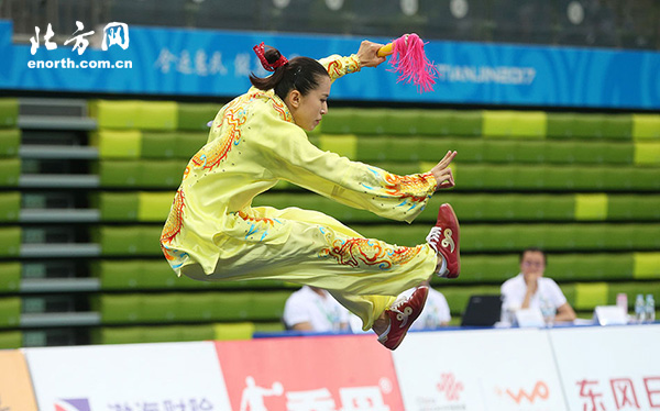 女子个人全能比赛由太极拳、太极剑两个竞赛单元组成,比赛从28日上午开始。此前,第11位出场的云南选手李建芳以9.693的成绩暂列第一位。代表天津出战的于萌萌第12位出场,一整套太极拳于萌萌发挥得行云流水,裁判员也给出了全场最高的9.710分,之后出场的运动员再也没有能超越她的,最终,在上午进行的太极拳项目上,于萌萌以9.710暂列第一,来自云南省的李建芳和来自河北省的巨文馨分别以9.693和9.680分列第二、三位。