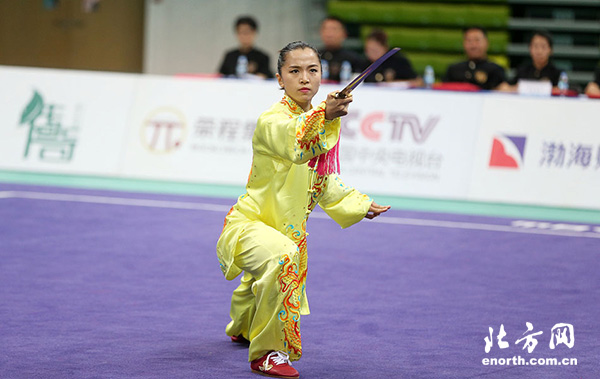 十三运武术套路决赛阶段的比赛昨天在天津理工大学体育馆揭开战幕。首日比赛,十二运冠军、天津名将于萌萌以19.420分的总成绩夺得女子太极拳太极剑全能金牌,卫冕成功。