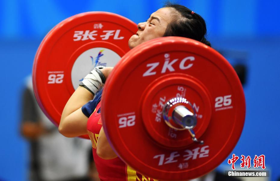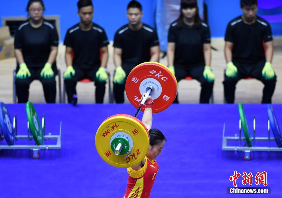 8月29日下午,天津全运会女子58公斤级举重决赛现场,来自国内各地的16位年轻选手同台角逐冠军。中新社记者 翟羽佳 摄