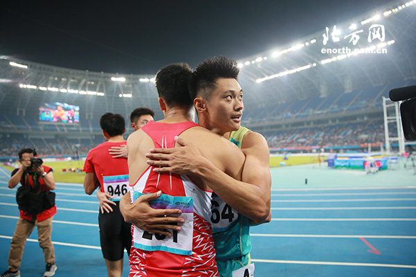 谢震业在国内有着200米之王的称号;苏炳添是第一个打破10秒大关的中国人,也是全国纪录保持者;张培萌是上届全运会100米、200米的卫冕冠军。这三人也是目前中国田径百米接力大队的核心人物。此前,全运会男子百米卫冕冠军张培萌在接受采访时明确表示,这将是他最后一届全运会,本场决赛也是他的收官之战。(“津云”—前沿新闻记者谭红媛 摄影马宬)