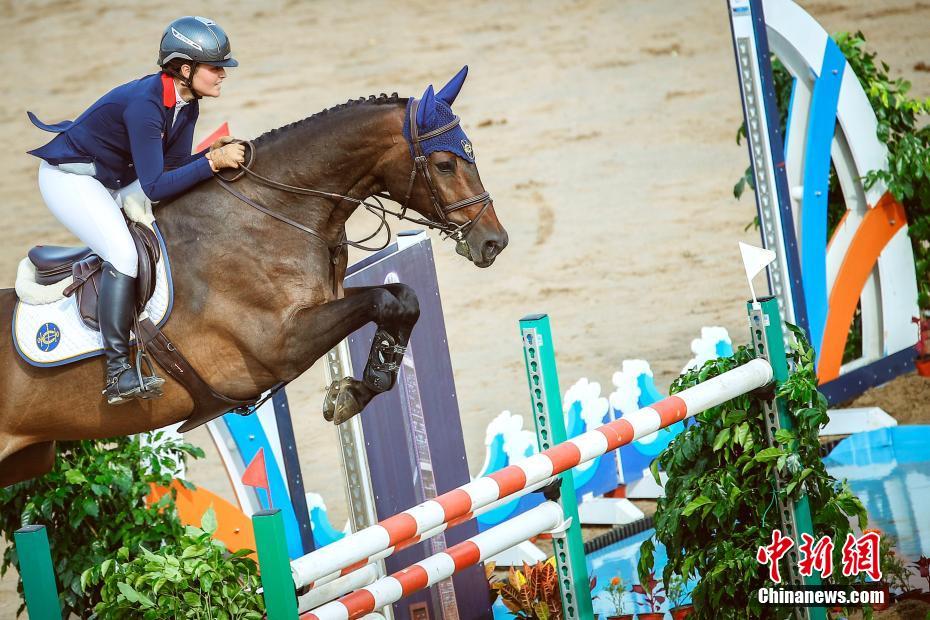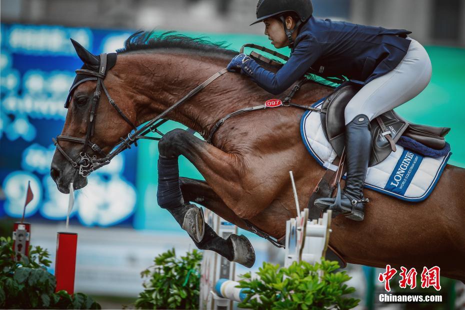 8月29日,香港队骑手黎嘉怡在比赛中,最终她晋级了马术场地障碍个人决赛。当天,第十三届全运会马术项目比赛在天津环亚马球公园拉开战幕。中新社记者 佟郁 摄