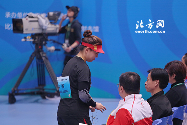 天津北方网讯:8月30日,全运会女子25米运动手枪决赛在天津团泊体育中心射击馆举行。青海队纪晓晶、江西队熊亚瑄、福建队张靖婧,分获该项目冠亚季军。