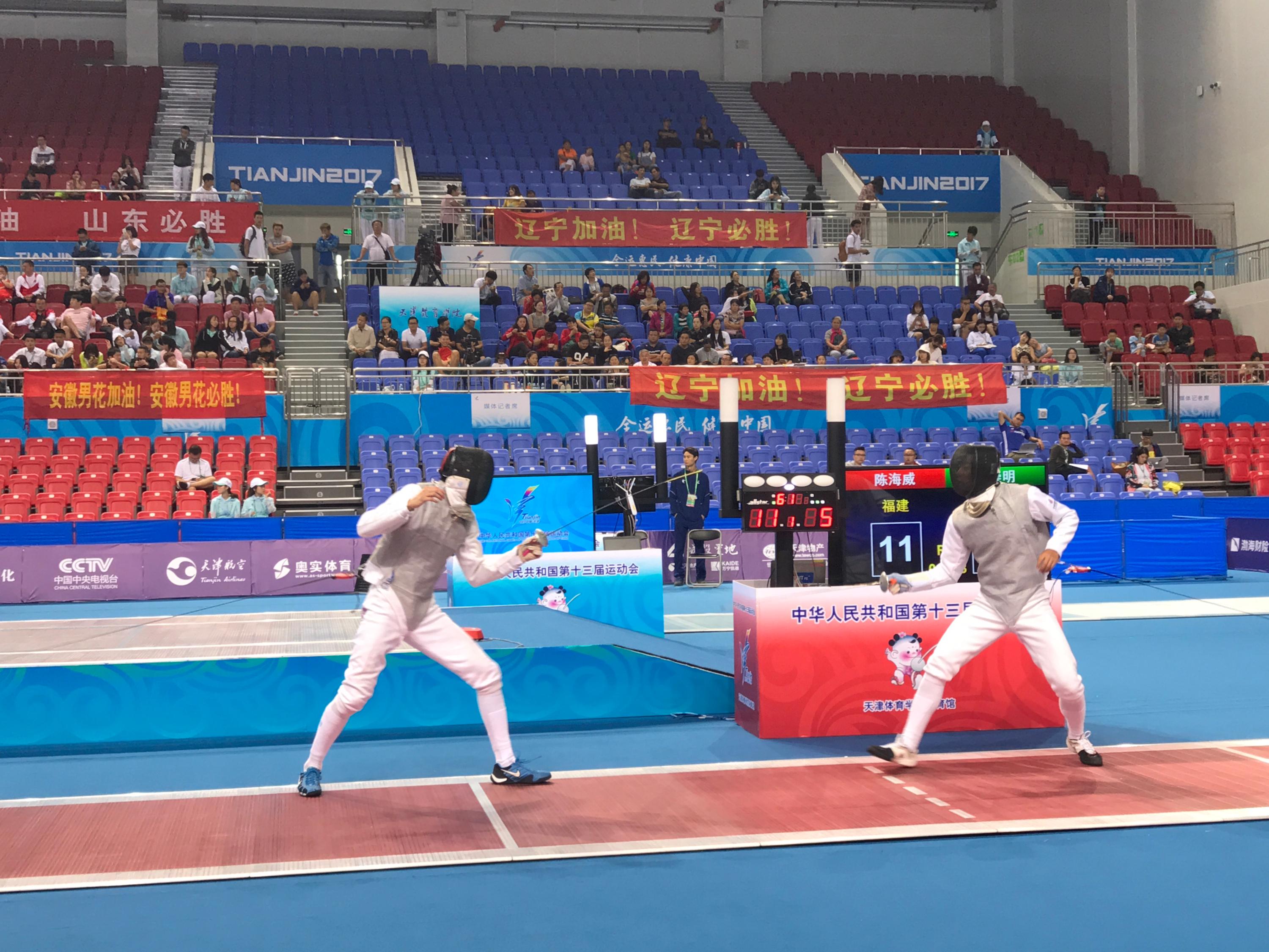 东道主天津队在全运会上表现同样不输于江苏队。在女子花剑个人项目上,冠亚军同时被天津队孙超和张赫男摘得,二人尽显出天津在女子花剑方面的集团优势。此外,在击剑方面一直具备实力的福建队也收获了1金1铜的优异成绩,带伤参赛的陈海威在比赛中强忍伤痛,力克香港选手崔浩然夺得冠军。乐慧琳在女子花剑个人项目上为福建队摘得铜牌。此外,本届全运会香港击剑队表现也尤为突出。崔浩然和方凯申分别在男子花剑个人和男子重剑个人中为香港队夺得一银一铜的成绩。