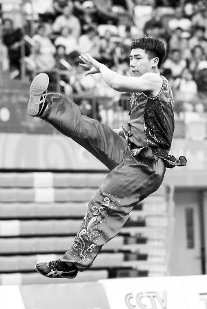 一名选手在男子南拳南刀南棍全能决赛中。新华社记者 赵戈摄