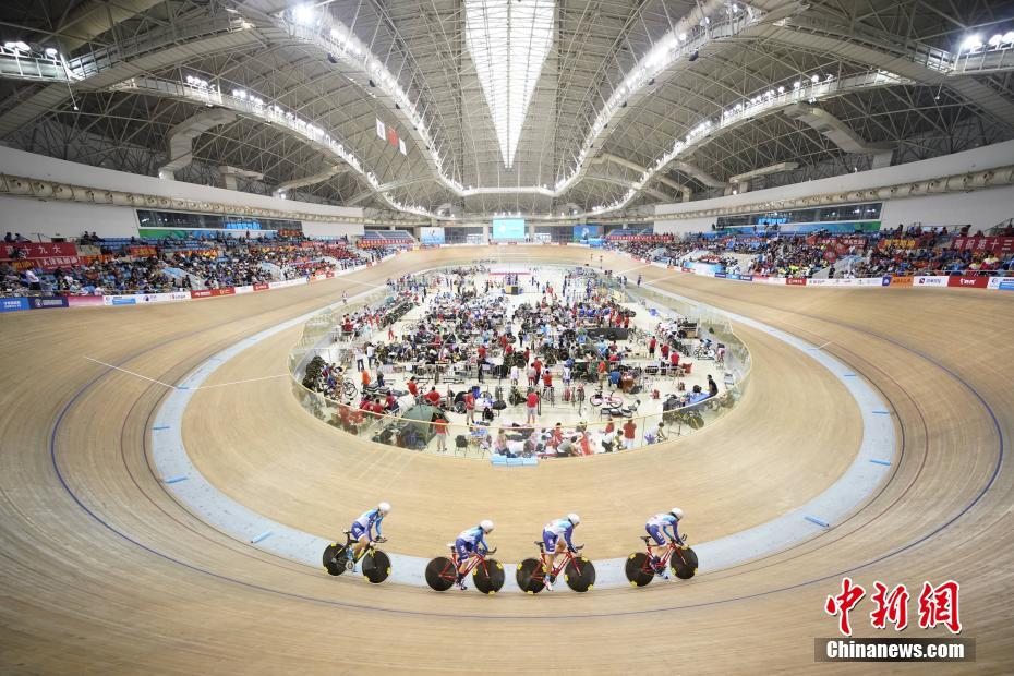 8月31日,香港队参加天津全运会自行车男子场地团体追逐赛7、8名决赛。中新社记者 佟郁 摄