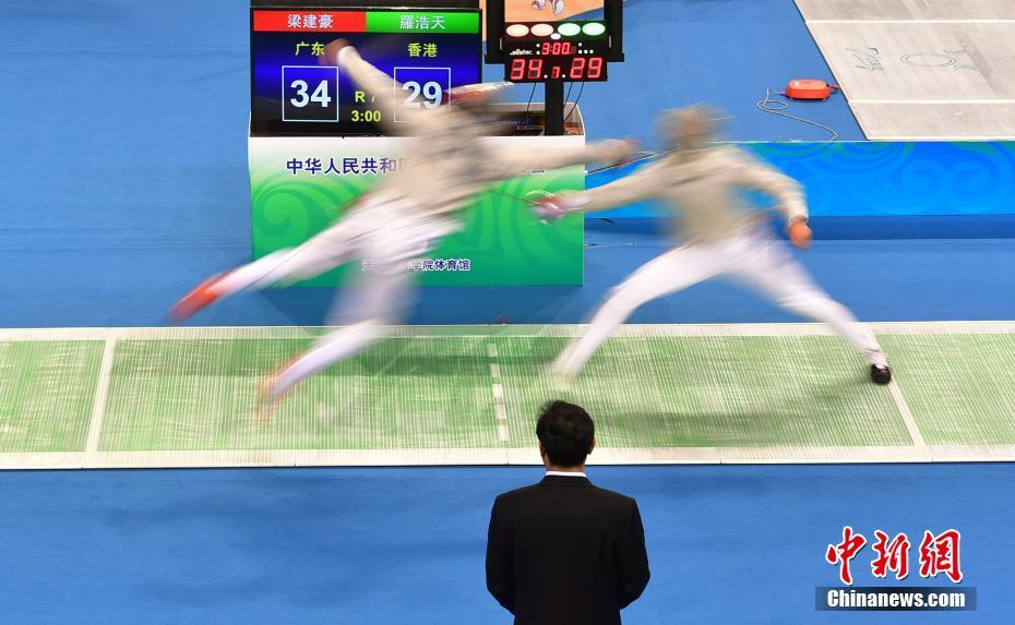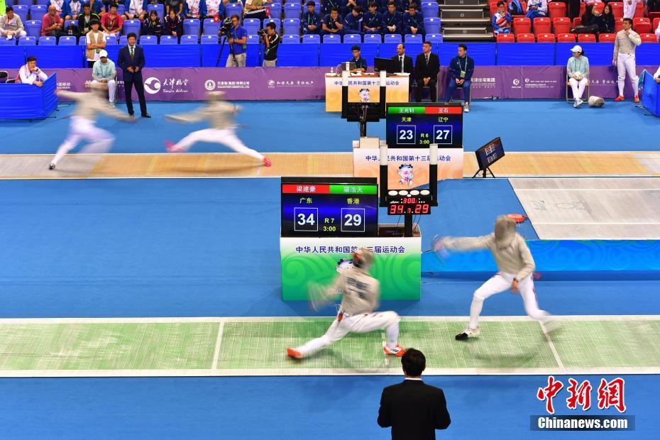 9月1日,天津全运会男子佩剑团体赛,香港队夺得该项目第七名。图为比赛现场。 中新社记者 翟羽佳 摄