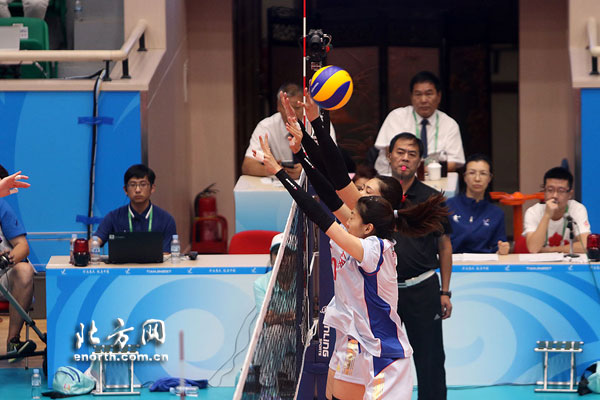 全运会女排成年组共有八支队伍参加,分成两个小组,浙江、江苏、天津、福建同在A组,辽宁、上海、北京、山东被分在B组。根据规则,八支队伍先进行小组单循环赛,然后是1/4决赛、半决赛,直至产生冠军。在本日率先进行的三场比赛中,A组的江苏女排3:0轻取福建女排;B组的辽宁女排3:0战胜北京女排,上海女排则苦战五局3:2战胜山东女排。(“津云”—前沿新闻记者张爱迎)