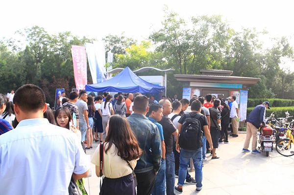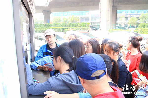 天津北方网讯:9月1日,全运会游泳比赛进入第二个比赛日,孙杨、徐嘉余、傅园慧等名将陆续登场。粉丝热情也在不断高涨,门口买票的人排起了长队,排在前面的粉丝从凌晨三点就开始排队购票,远从四川、黑龙江等省份赶过来的粉丝聚集在赛场门口,交换着应援的旗子和小扇子。远从宁夏银川过来的边淑霞拎着拉杆箱开心地和孙杨的海报合影:“我自己很喜欢游泳,这一次来天津看全运会很激动。票是前一天下午四点买的,很顺利。”(“津云”—前沿新闻记者霍艳华)