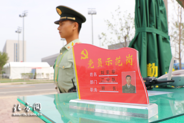 8月29日,担负全运会安保任务的武警天津市滨海新区支队党员刘亚非正在哨位执勤