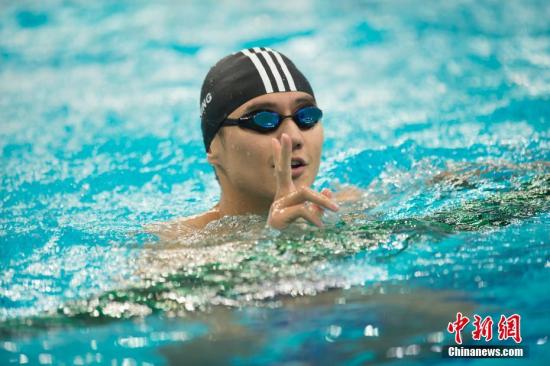 图为宁泽涛进行热身活动。中新社记者 李卿 摄