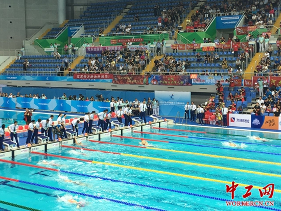 全运会女子200米蛙泳决赛9月5日晚在天津奥林匹克体育中心游泳跳水馆展开对决。江苏队史婧琳以2分22秒66轻松夺得冠军!天津队郑木岩和北京水立方队的于静瑶分别获得银牌和铜牌。(中工网记者朱林)