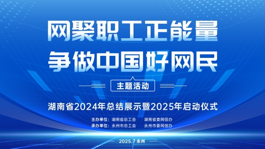 由湖南省总工会、湖南省委网信办联合主办,永州市总工会、永州市委网信办承办的2025年湖南省“网聚职工正能量 争做中国好网民”主题活动于7月31日上午9:30在永州市工人文化宫正式启动,以更加澎湃激昂的正能量,激励广大职工群众脚踏实地、奋发进取、拼搏奉献,为书写中国式现代化壮丽篇章作出更大贡献。