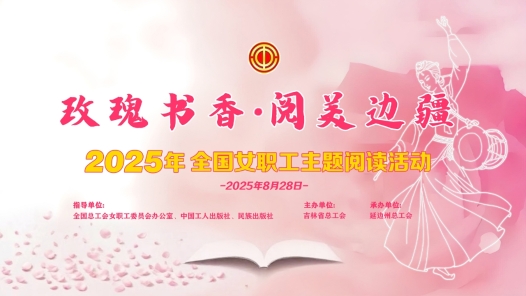 为认真学习贯彻落实习近平总书记在庆祝中华全国总工会成立100周年暨全国劳动模范和先进工作者表彰大会上的重要讲话精神,深化铸牢中华民族共同体意识,切实加强女职工思想政治引领工作,促进女职工素质提升,持续推进家庭文明建设,由全国总工会女职工委员会办公室、中国工人出版社、民族出版社全程指导,吉林省总工会主办,延边州总工会承办的2025年“玫瑰书香·阅美边疆”全国女职工主题阅读活动于8月28日盛大开启!8月28日9:30,全国总工会微信公众号、职工之家app、中工网、职工书屋、吉林省总工会视频号、抖音官方账号、微博官方账号、吉工“云课堂”、延边工会等九大平台全程直播,邀您共赴一场书香与文化交融的盛宴!