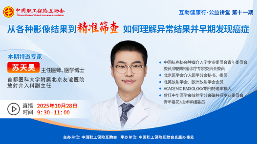 直属办事处承办,特别邀请影像介入领域权威专家,带您深入探讨“如何理解异常结果并早期发现癌症”,从专业角度解读指南、分析利弊,为您提供基于影像学检查的个体化防癌筛查,助您做出明智的健康选择!10月28日9:30,中工网首页、微博、视频号同步播出。