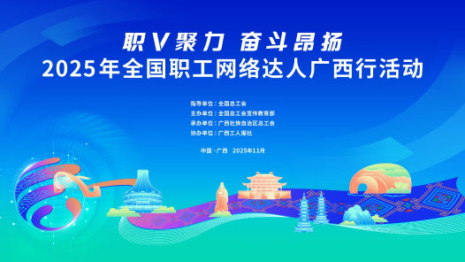 2025年“职V聚力 奋斗昂扬”职工网络达人广西行活动于11月4日在广西南宁启动。本次活动由全国总工会指导,全国总工会宣传教育部主办,广西壮族自治区总工会承办,广西工人报社协办。11月4日9:00,中工网首页、微博、视频号同步播出。