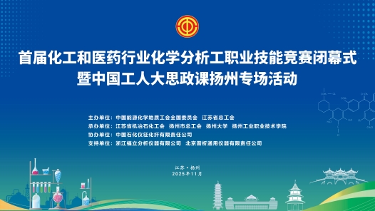 首届化工和医药行业化学分析工职业技能竞赛由中国能源化学地质工会全国委员会和江苏省总工会共同主办,江苏省机冶石化工会、扬州市总工会、扬州大学、扬州工业职业技术学院承办。竞赛覆盖范围广,职工参与度高。本次赛事7月份启动,共有36个赛区开展选拔赛,累计培训职工达61450人次,2827名优秀选手同台竞技。竞赛包括理论基础知识、化学分析、色谱分析、分光光度分析和实验室安全隐患排查等竞赛项目。决赛于2025年11月27日在江苏省扬州市举办,汇聚全国25个省(区、市)的36支代表队,118名分析尖兵巅峰对决。中工网首页、微博、视频号同步播出。
