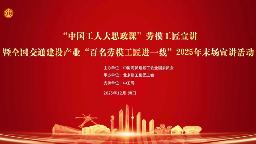 12月5日,“中国工人大思政课”劳模工匠宣讲暨全国交通建设产业百名劳模工匠进一线2025年末场宣讲活动在海口举办,旨在深入学习贯彻习近平新时代中国特色社会主义思想和党的二十大、二十届历次全会精神,深入落实习近平总书记在中华全国总工会成立100周年暨全国劳动模范和先进工作者表彰大会上的讲话精神,落实做强“中国工人大思政课”工作要求,突出产业特色,大力弘扬劳模精神、劳动精神、工匠精神,激励广大职工在新征程上再接再厉,接续奋斗,书写工会事业时代新篇章。中工网首页、微博、抖音号同步播出。